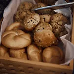 En frukostbuffé med olika matalternativ serveras varje morgon.